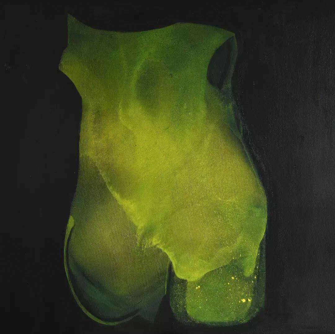 Study of an hermaphrodite bust. ( yellow green) 2022. Acrylic on canvas. 80 x 70 cm. 31,5 x 27, 56 inch.